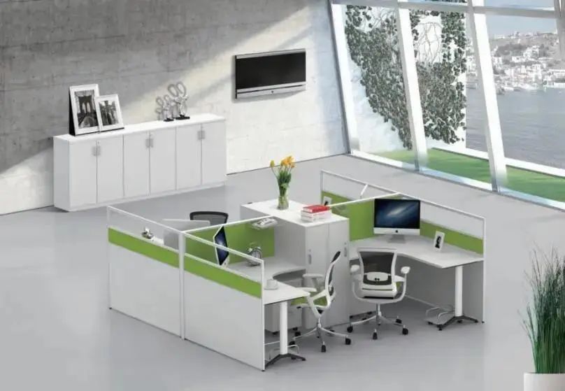 办公桌是员工停留时间最长的区域,其选择至关重要。线条简洁的矩形桌是经典选择。如今,弧形办公桌更受欢迎,它能柔化空间线条,避免尖锐的棱角,安全性更高,视觉上也更流畅。组合办公桌适用于开放办公区,模块化的设计可以拼成直线、波浪形或蜂巢状,促进协作的同时,最大化利用空间。