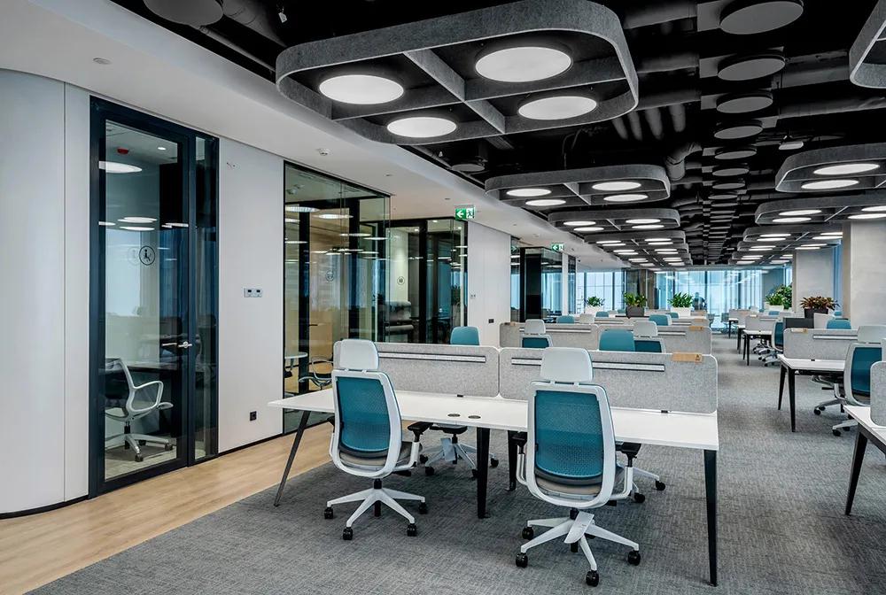 可调节高度的电动办公屏风、内置通风系统的智能隔断、甚至透明与磨砂可切换的玻璃屏风开始出现。这些设计允许员工根据任务需求调整自己的隐私级别——需要专注时升高屏风,需要协作时降低或透明化。